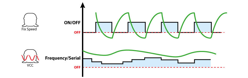 The chart below illustrates how compressor speed management using the CAREL iJ controllers achieves much more stable regulation.