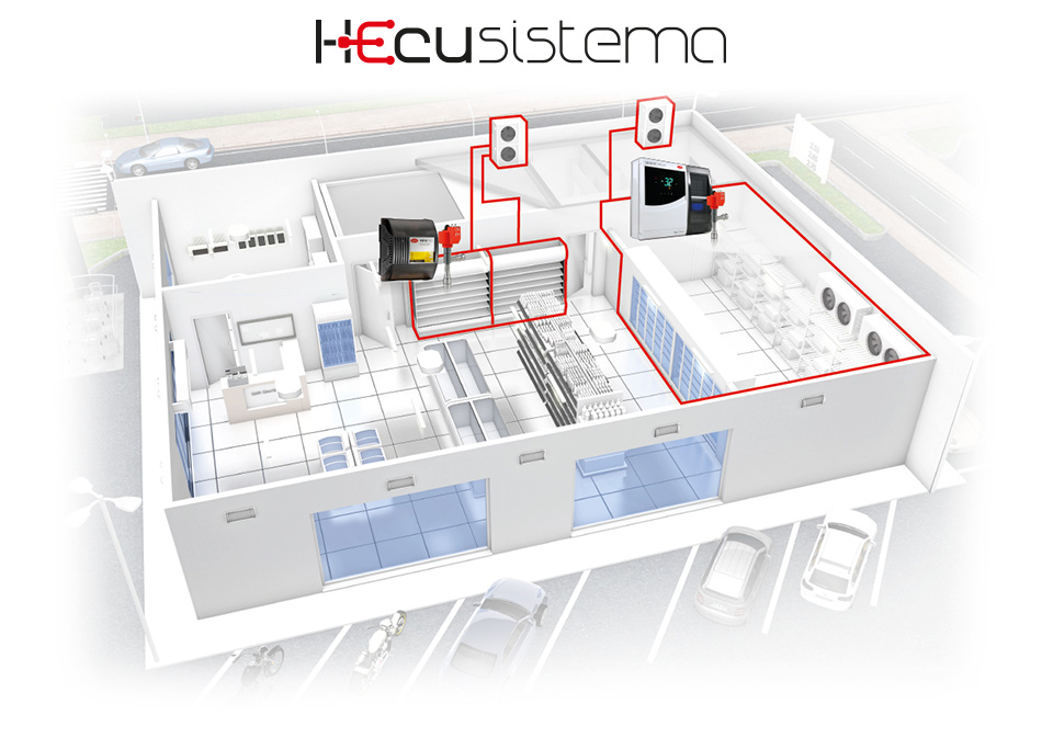 Hecu sistema is the CAREL high efficiency solution for condensing unit for commercial refrigeration. It has now evolved to work with natural refrigerants by integrating management of DC inverter compressors for CO2 refrigerant.