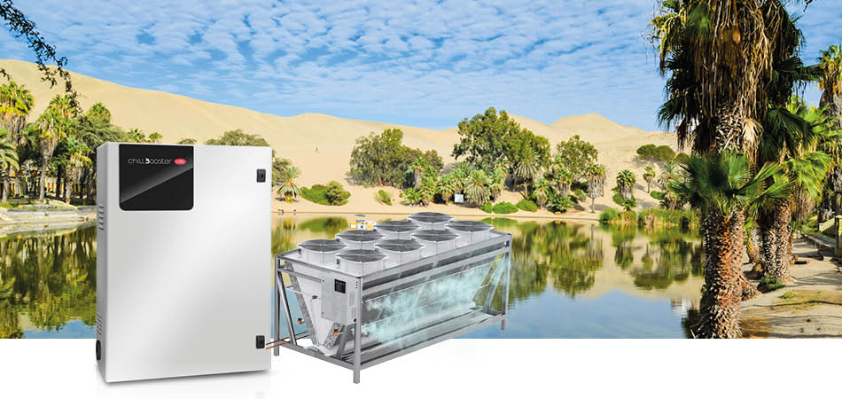 Increase the efficiency of your chiller or fluid cooler with chillBooster!