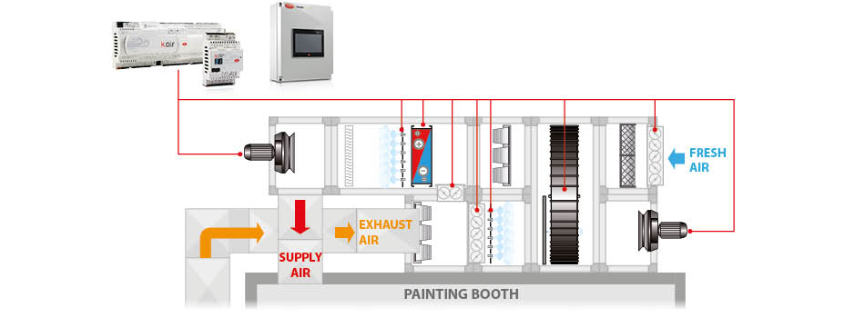 Humidification, evaporative cooling, heat recovery and integrated control of high-efficiency components for air handling units are the heart of CAREL’s know-how for painting processes.