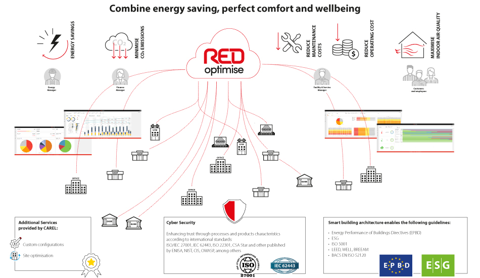 - the RED optimise platform, a supervisory and monitoring solution that acquires data from the field devices on each individual site;