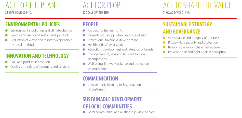 The plan has been translated concretely into 55 sustainability goals that are in turn broken down into specific targets that will be achieved through the involvement of all 13 company departments and an economic commitment of more than 2.6 million euro.